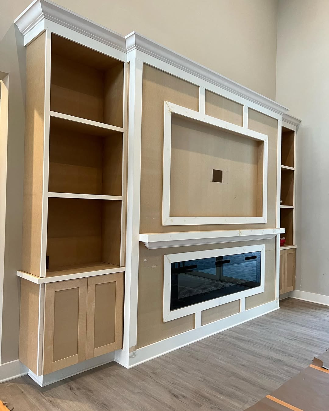 We specialize in custom built-ins, trim work, feature walls, and closet systems — all handcrafted to fit your space and style.